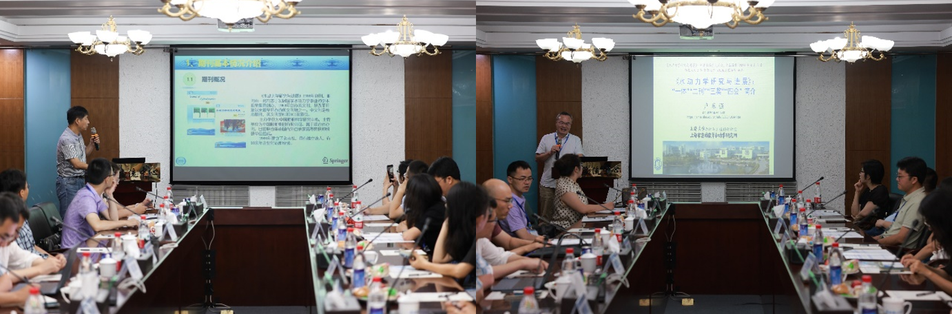 8月5日上午,中国船舶科学研究中心马峥研究员对《水动力学研究与进展》期刊现状与未来发展状况进行思考与总结,上海大学卢东强教授对《水动力学研究与进展》期刊“一体、二刊、三奖、四会”进行介绍,华北电力大学张宇宁教授以“加强编委交流的若干思考”为主题,围绕青年学者诉求,与编委会成员开展交流。